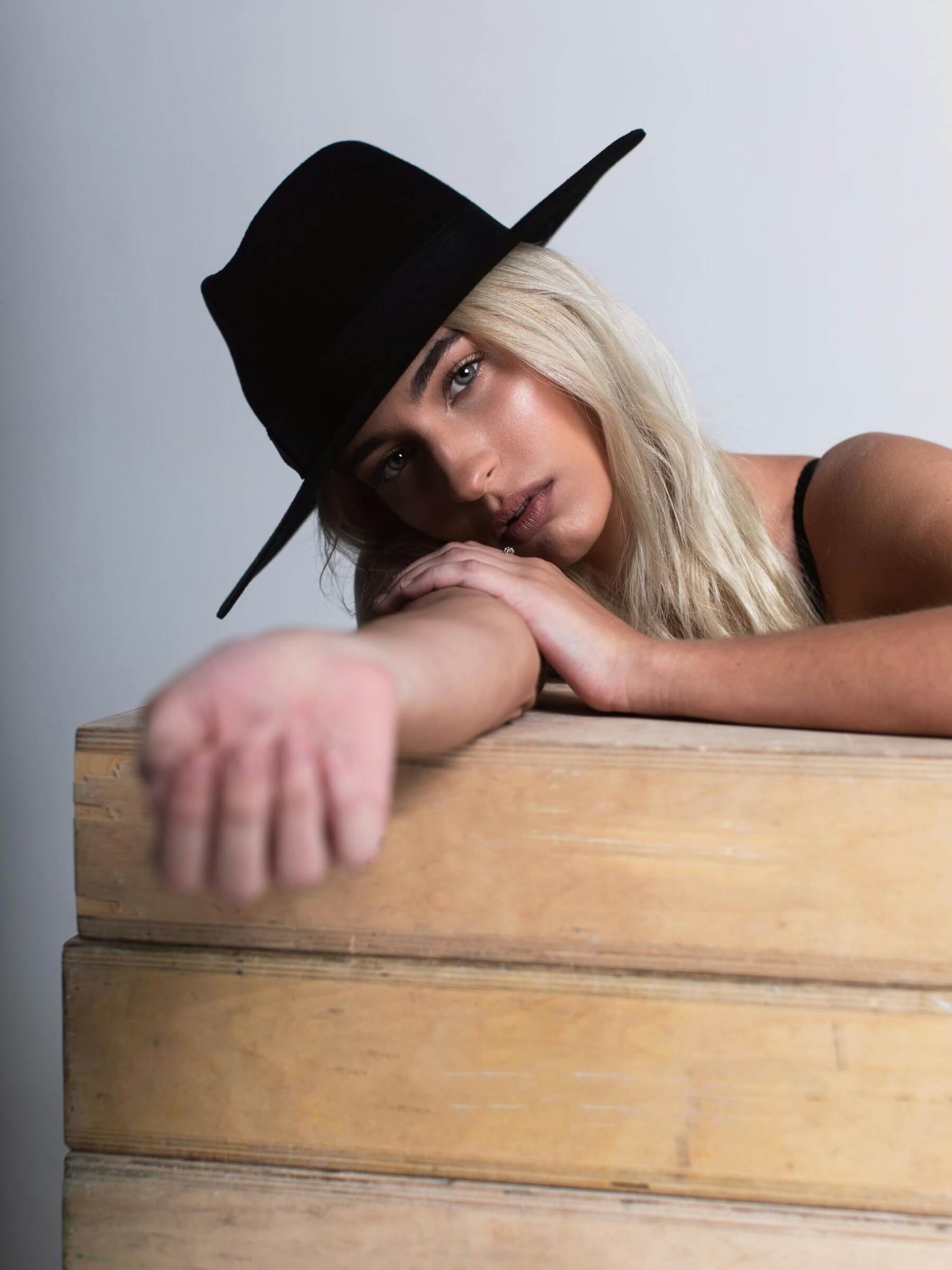 Cowboy hat in felted wool with a classic pinched crown.