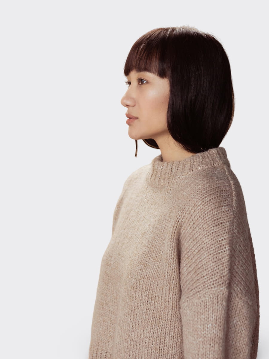 Knit sweater with perkins neck